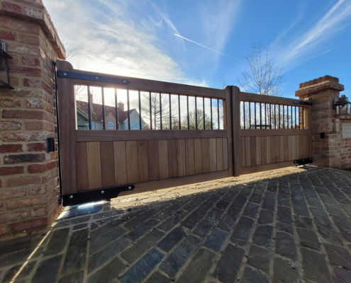Automatic Bespoke Iroko Untreated Gates – October 2025 Lindsell Essex